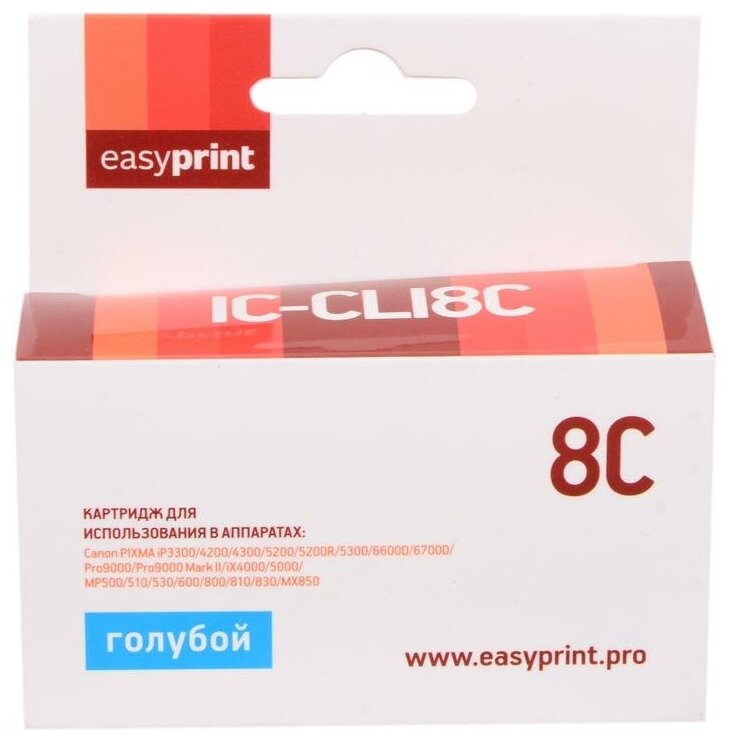 Картридж EasyPrint IC-CLI8C для Canon PIXMA iP4200/4300/5200/Pro9000/MP500/600, голубой, с чипом
