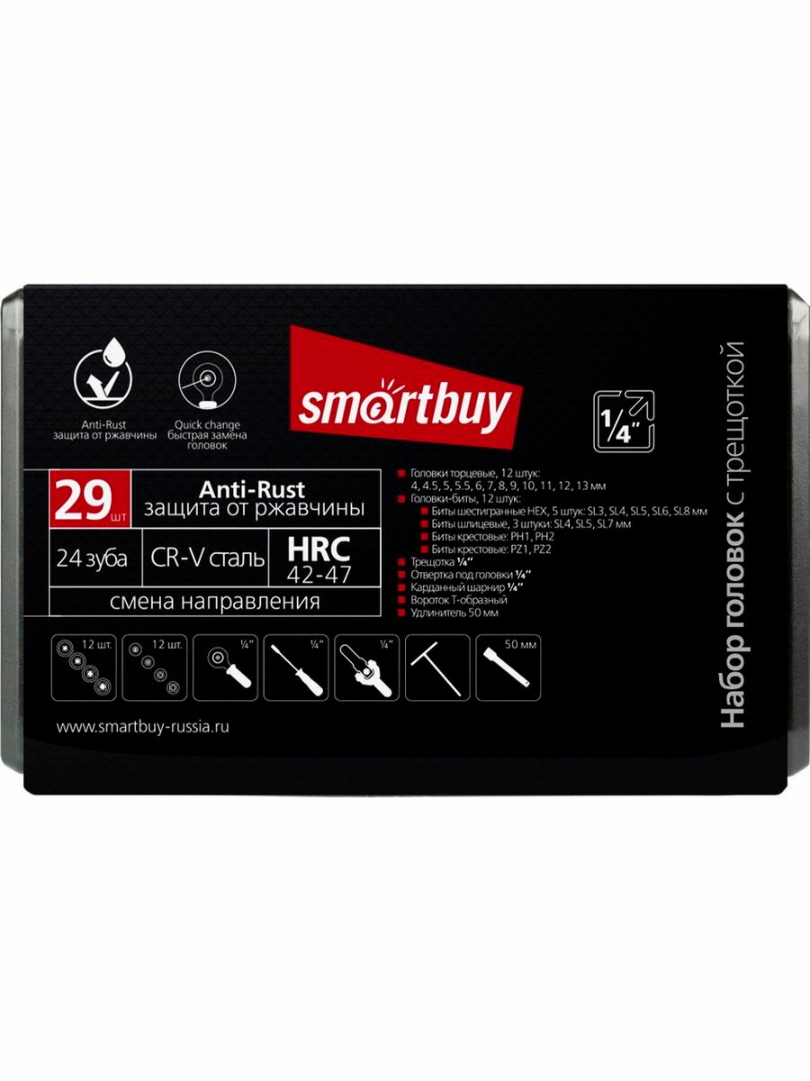 Набор головок 1/4", 29 предметов Smartbuy SBT-SSW-29P1