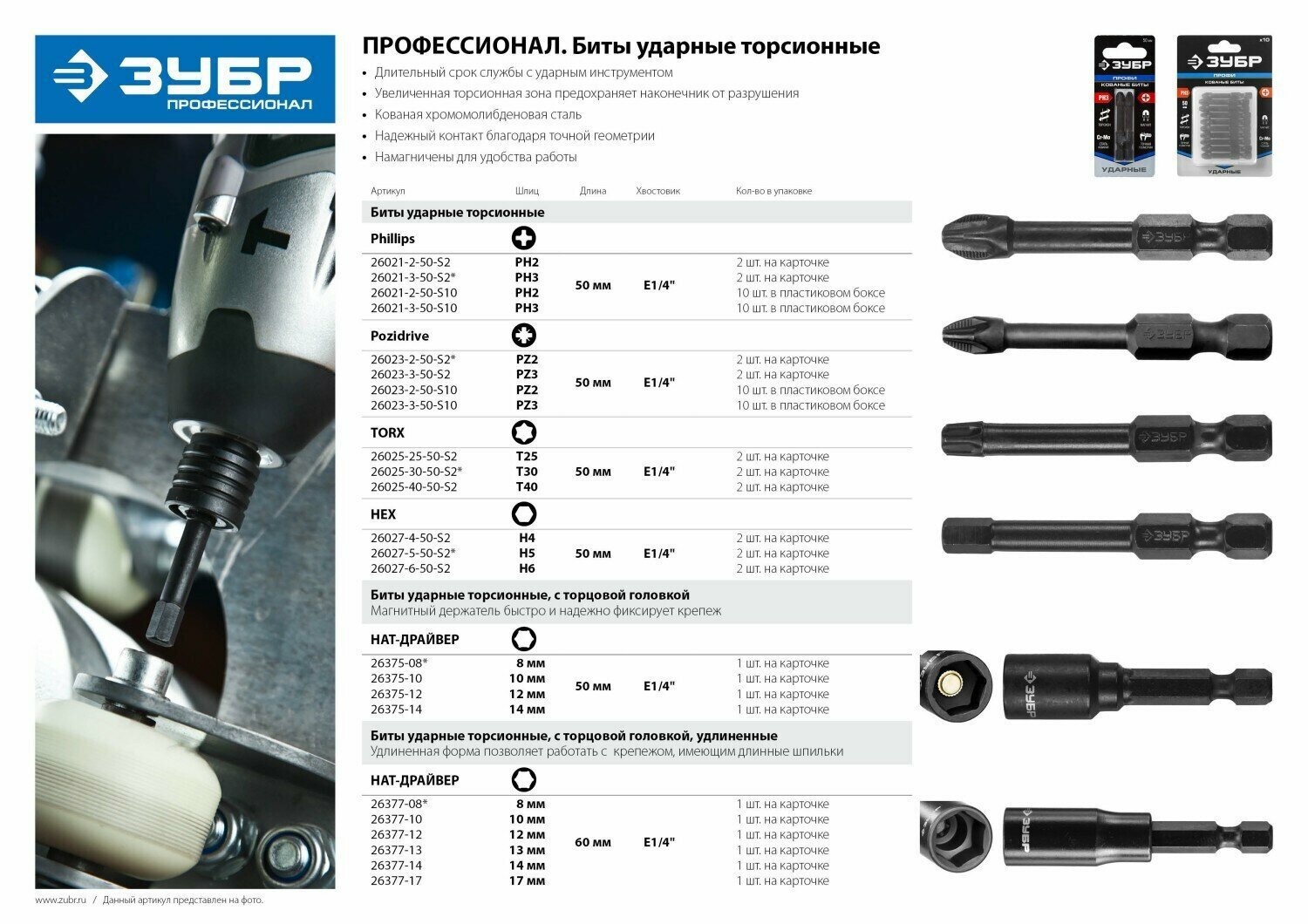 Бита ЗУБР ударная с торцовой головкой 26377-10