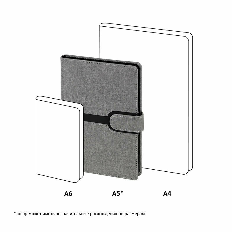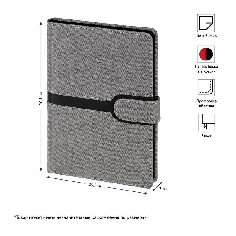 Ежедневник недатированный A5 OfficeSpace Denim (160 листов) обложка кожзам, серый, черный срез (ENA5_32537)
