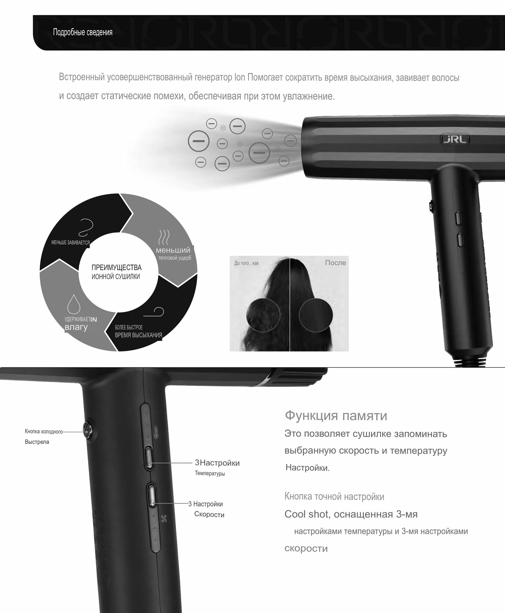 Фен для волос jRL Forte Pro FP2020H CN черный с переходником интересное:
