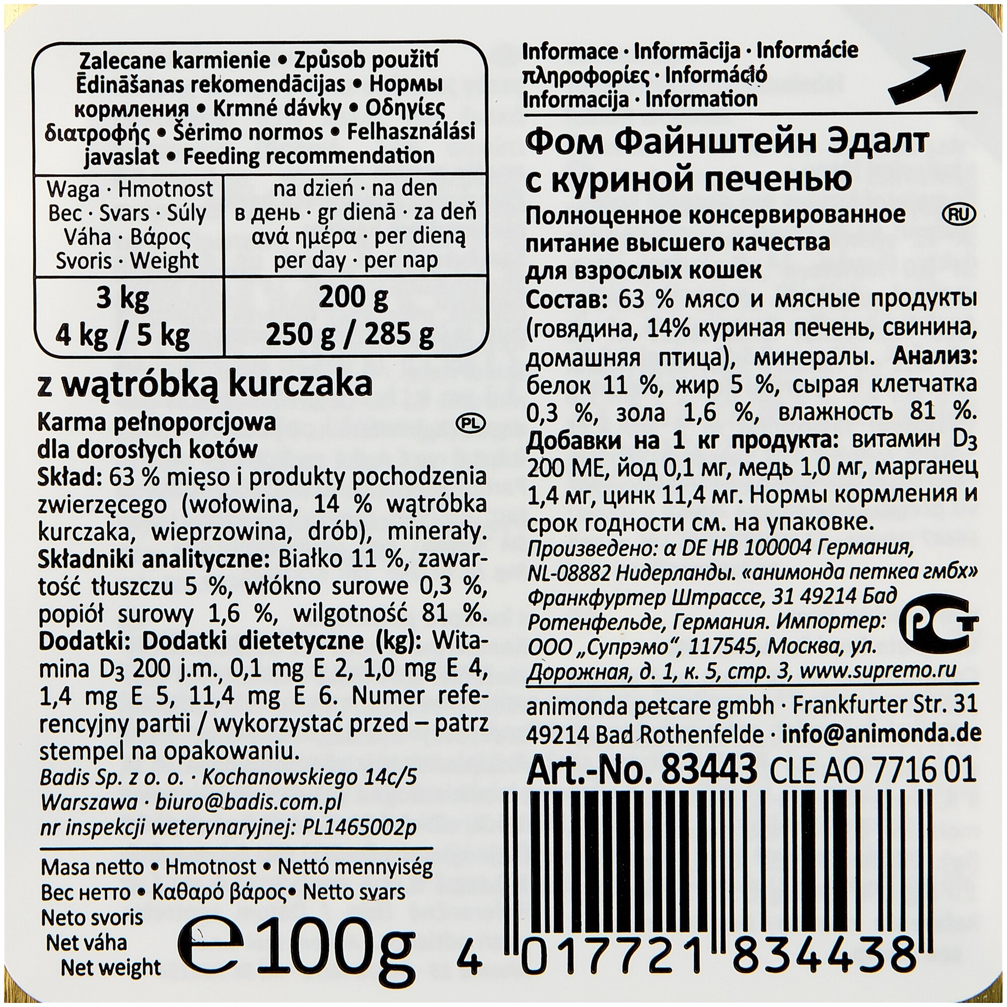 Влажный корм для кошек Animonda Vom Feinsten, беззерновой, с печенью 100 г х 32шт (паштет) интересное: