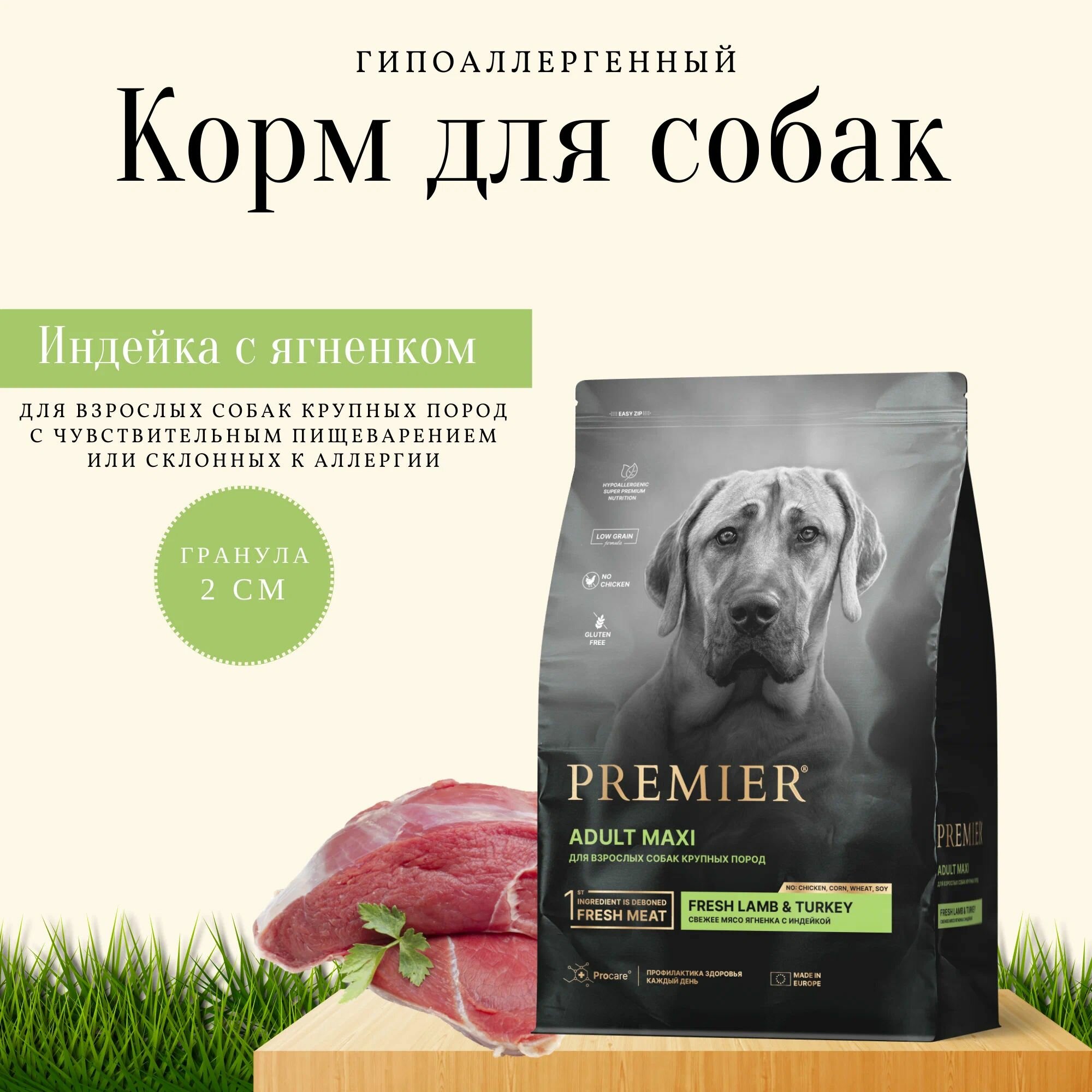 Сухой корм Premier Dog Lamb&Turkey ADULT Maxi Свежее мясо ягненка с индейкой для собак крупных пород, 3 кг
