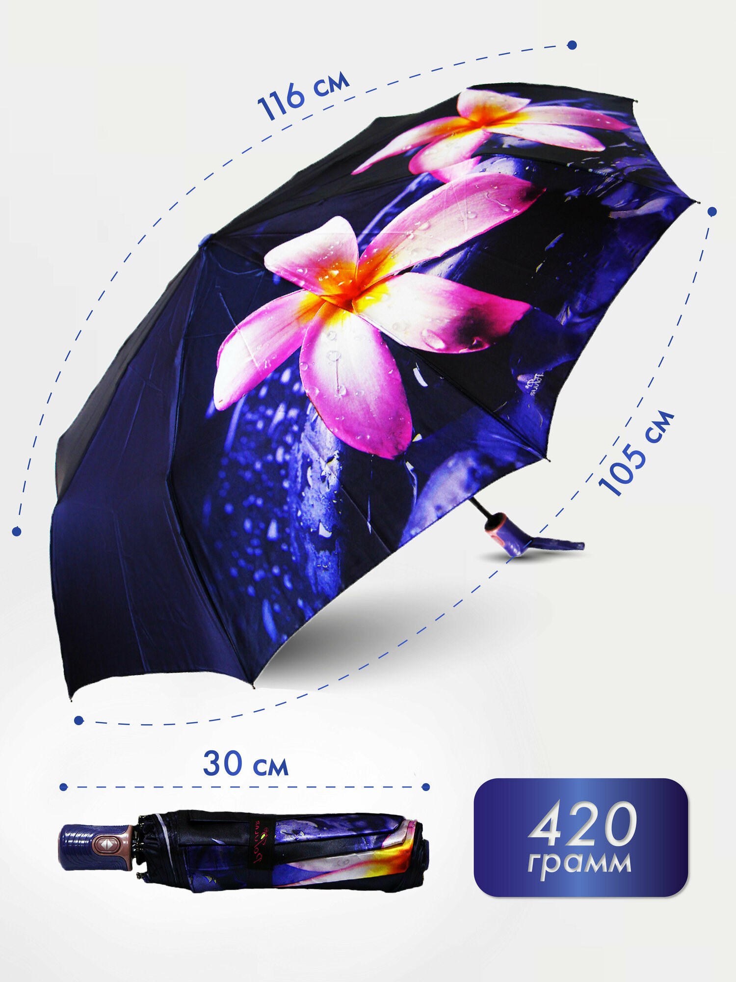 Зонт женский автомат, зонтик взрослый складной антиветер 1296/Черный-A