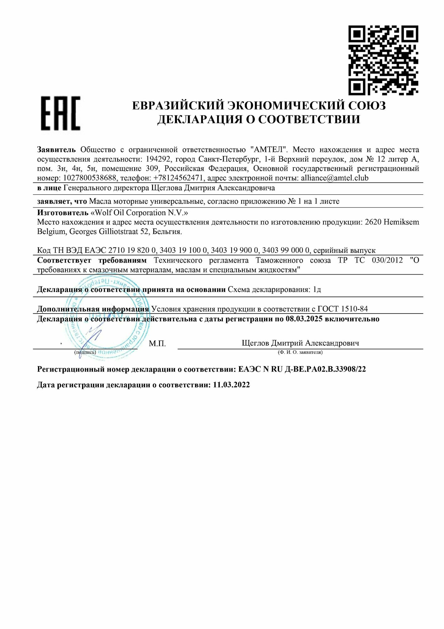 WOLF OIL 8309113 1шт