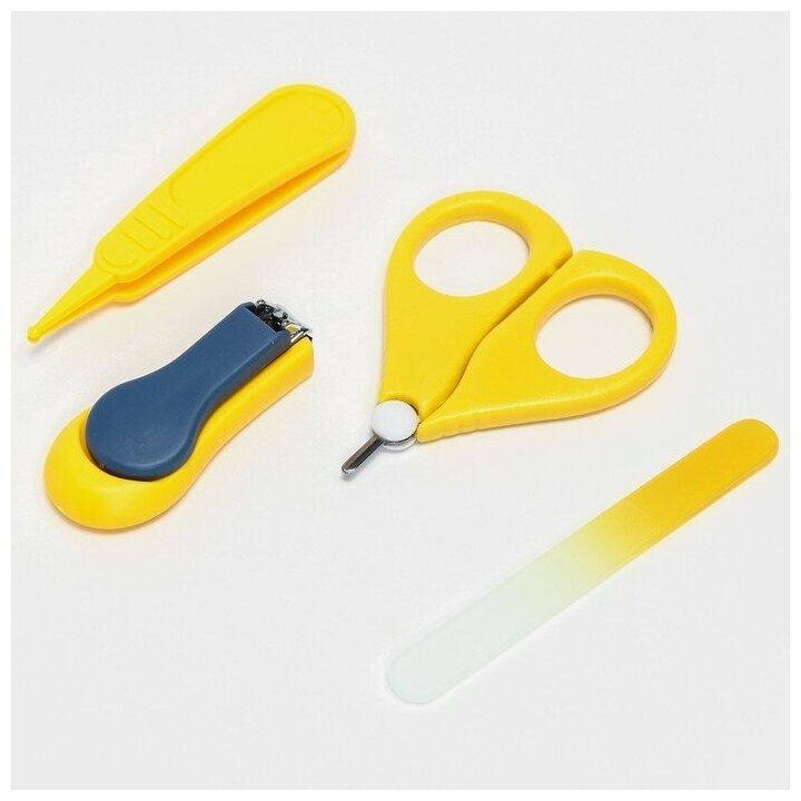 Детский маникюрный набор (ножницы, книпсер, пилка, пинцет), цвет желтый