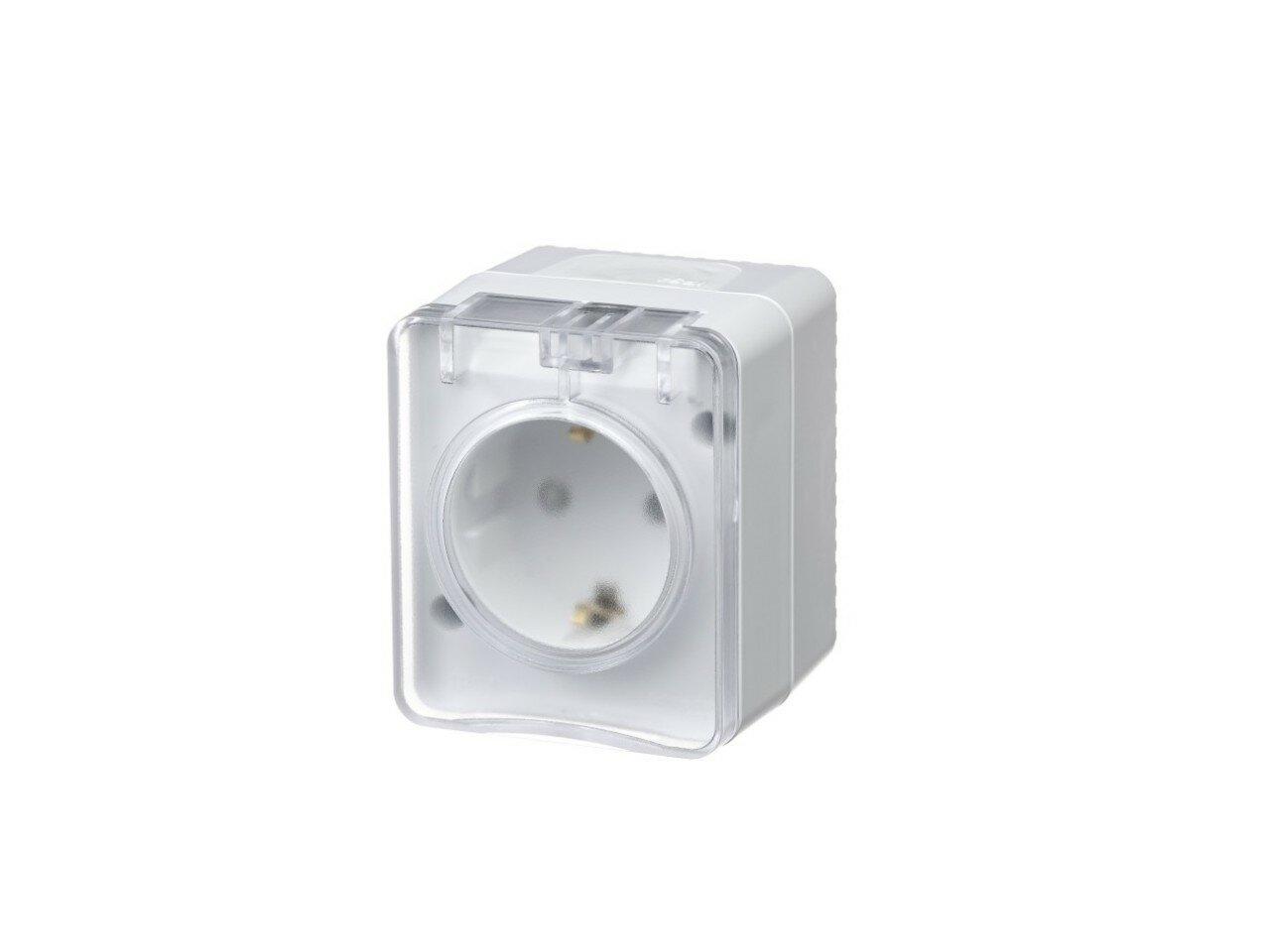Розетка Schneider Electric AtlasDesign Profi54 с заземлением со шторками с крышкой белая для открытой проводки