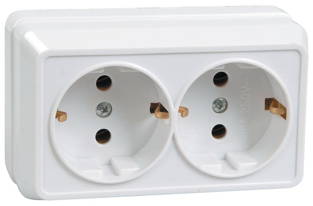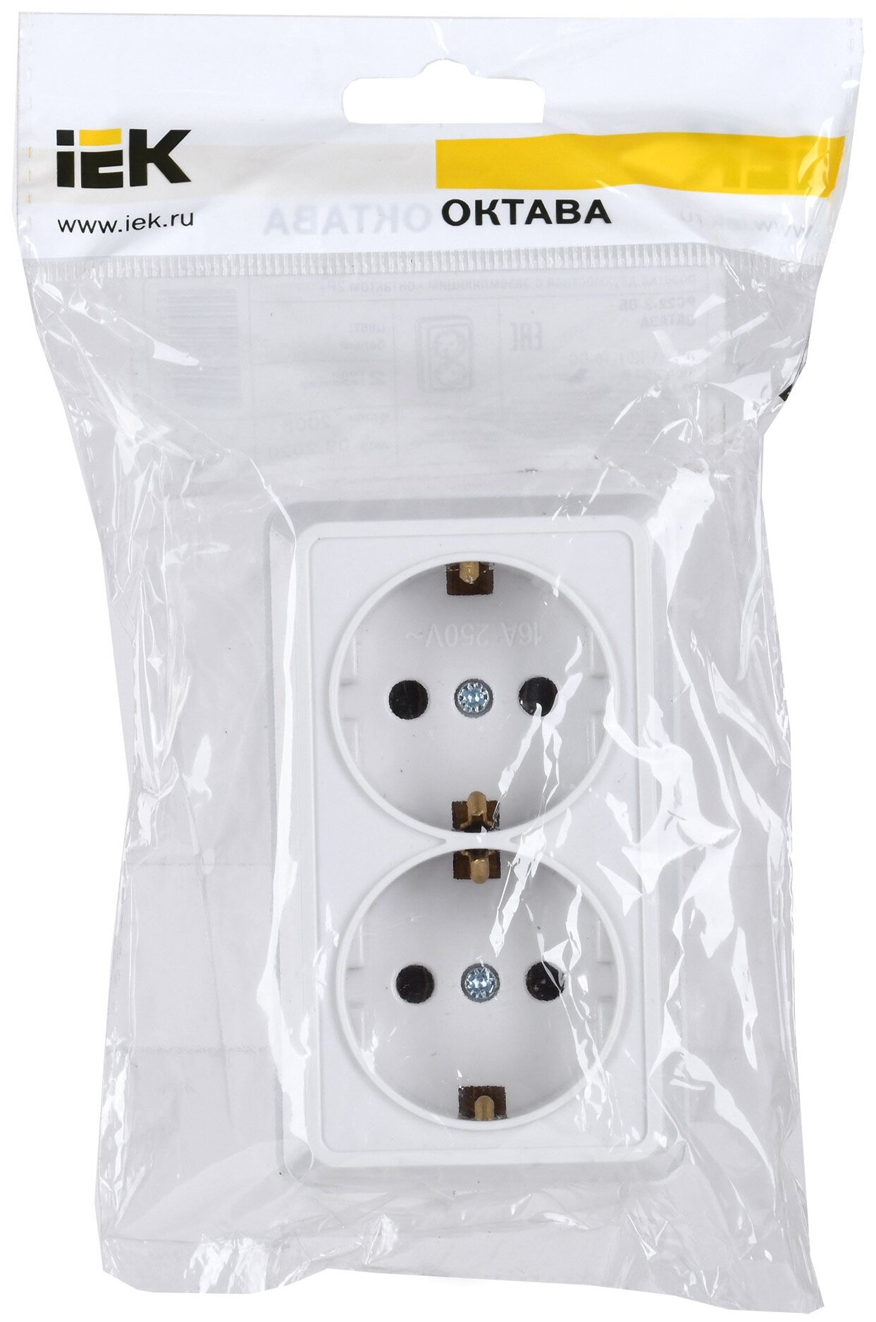 Розетка двойная накладная IEK Октава, с заземлением, 16 А, 250 В, IP20, белая