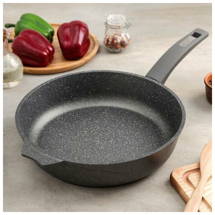 Сковорода «Гранит» d=28 см пластиковая ручка антипригарное покрытие цвет серый интересное: