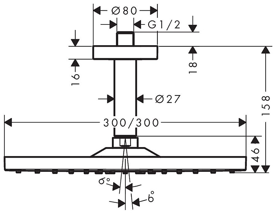 Верхний душ hansgrohe Raindance E 300 1jet EcoSmart с потолочным кронштейном 26251000, хром интересное: