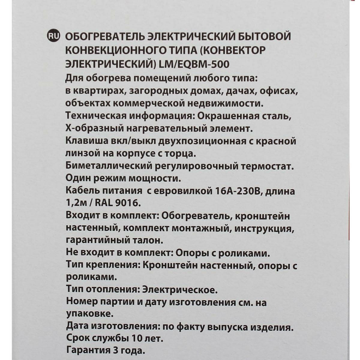 Конвектор электрический Equation LM/EQBM-500 с механическим термостатом, 500 Вт интересное: