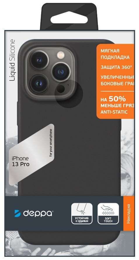 Чехол Deppa Liquid Silicone Pro для Apple iPhone 13 Pro, черный, картон