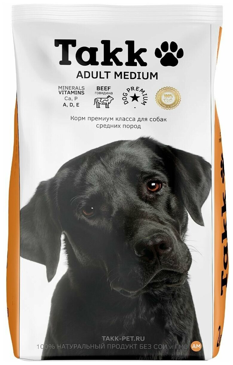 Сухой корм Takk для взрослых собак средних пород, с говядиной, 15 кг