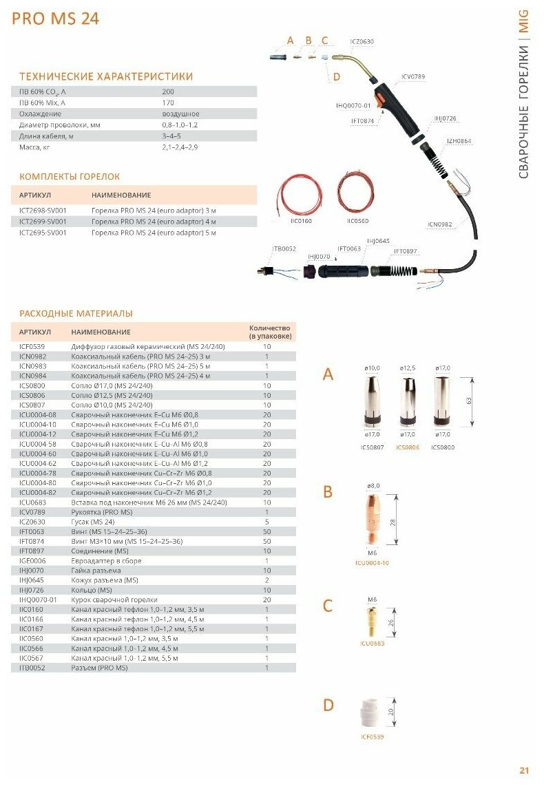 | Подробная комплектация | -сварочная горелка MS 24 – 1 шт.; -евро адаптер – 1 шт.; -коаксиальный кабель – 1 шт.; -рукоятка в сборе – 1 шт.; -гусак – 1 шт.; -сопло – 1 шт.; -сварочный наконечник – 1 шт.; -канал направляющий – 1 шт.; -диффузор - 1 шт.; -вставка под наконечник - 1 шт. |