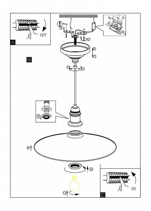 49452 Подвес BRIDPORT, 1х60W (E27), Ø360, H1100, сталь, черный, медный