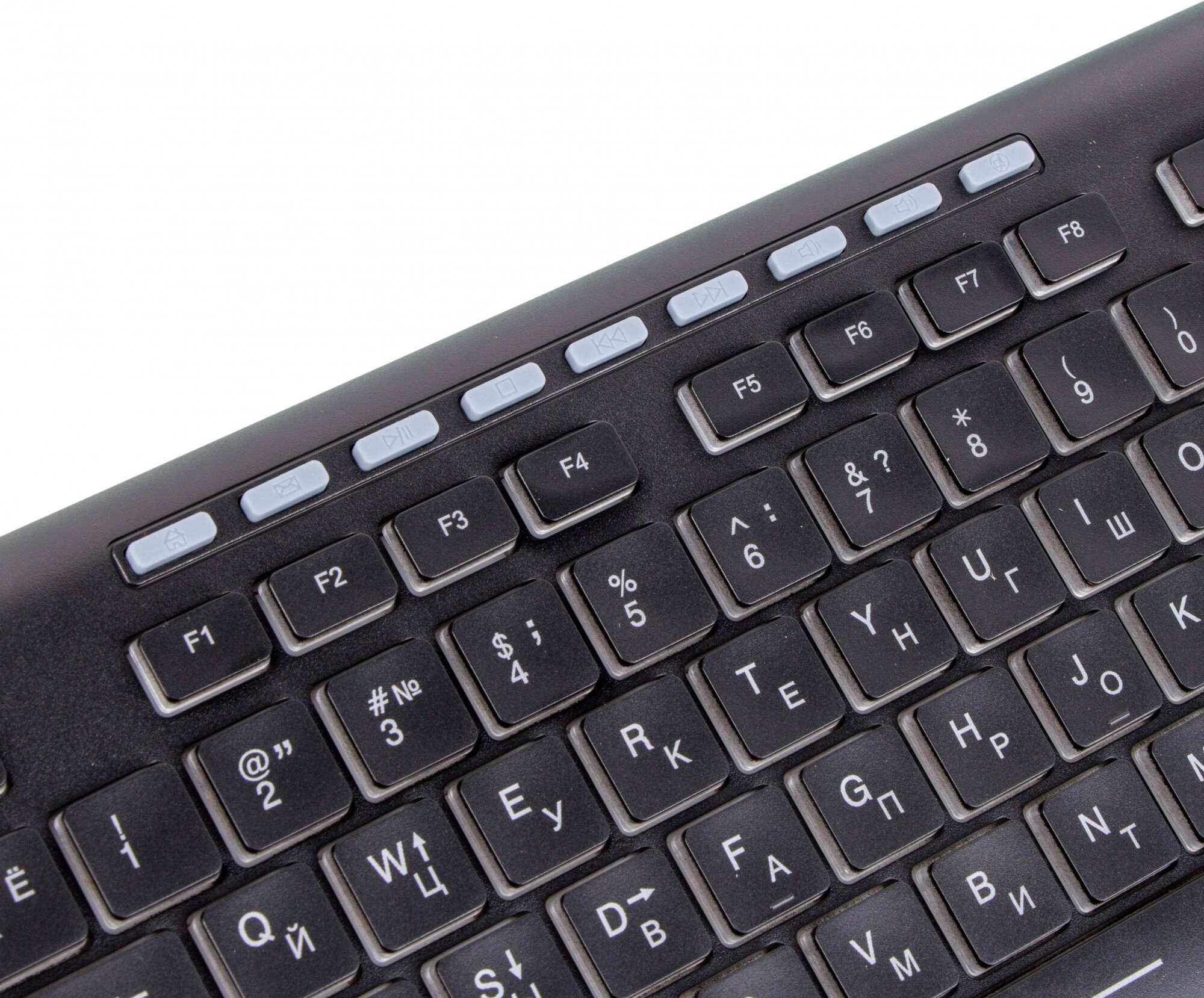 | Плюсы: | Неплохое соотношение цены с возможностями, внешним видом и качеством. Современный минималистичный вид. 3 режима подсветки - 1. Полный круг цветов от зелёного к синему, 2. От малинового к зелёному через синий, и 3. Лимонный-фиолетовый-бирюзовый. Присутствуют дополнительные резиновые клавиши - громкость, отключение звука, управление проигрыванием мультимедиа и прочее. |