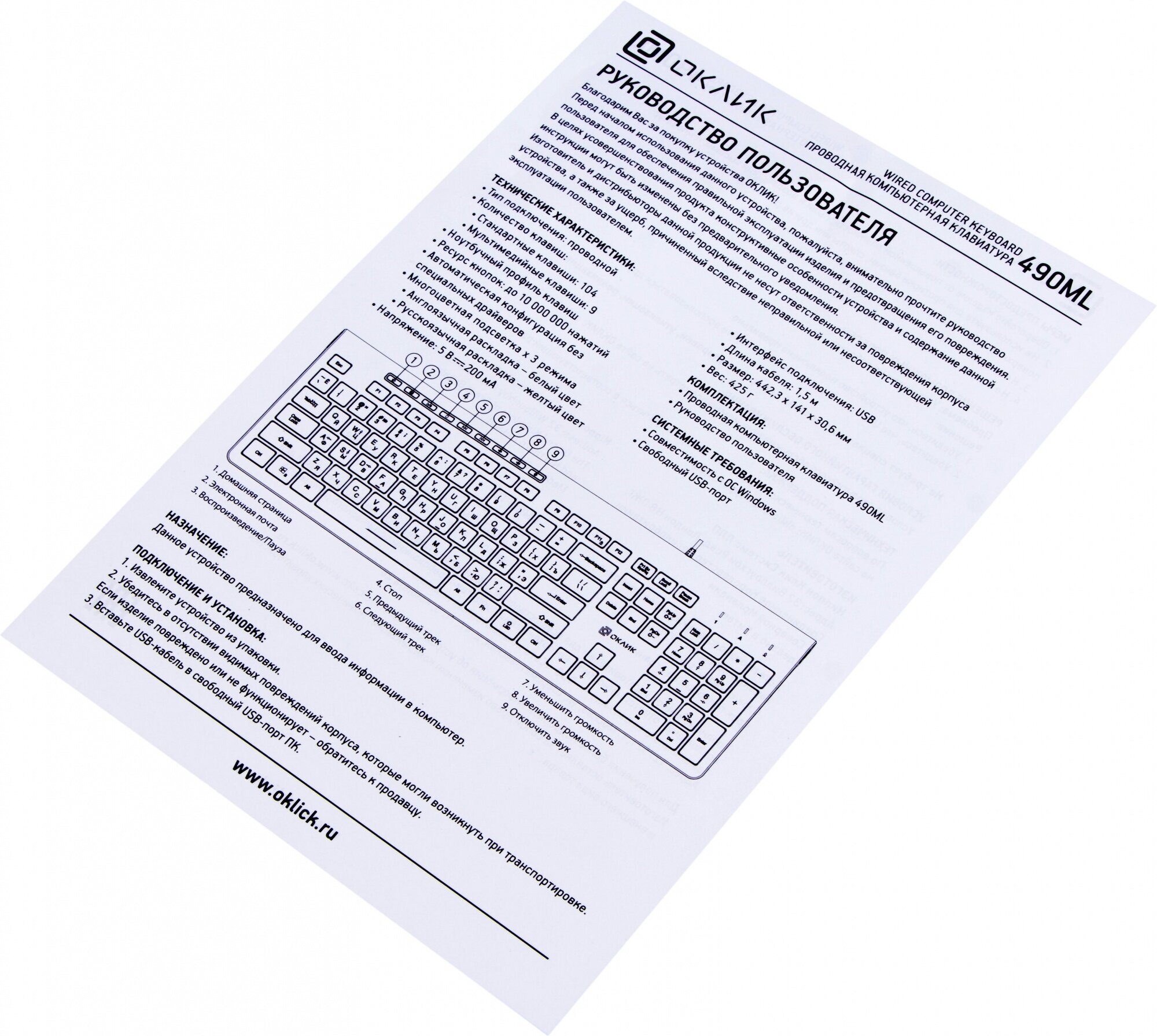 Клавиатура Oklick 490ML, USB, черный [1067202]