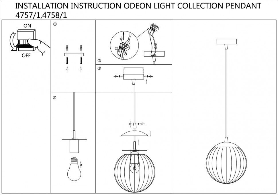 ODEON LIGHT Подвес стекло E27 60W KATA 4757/1 интересное: