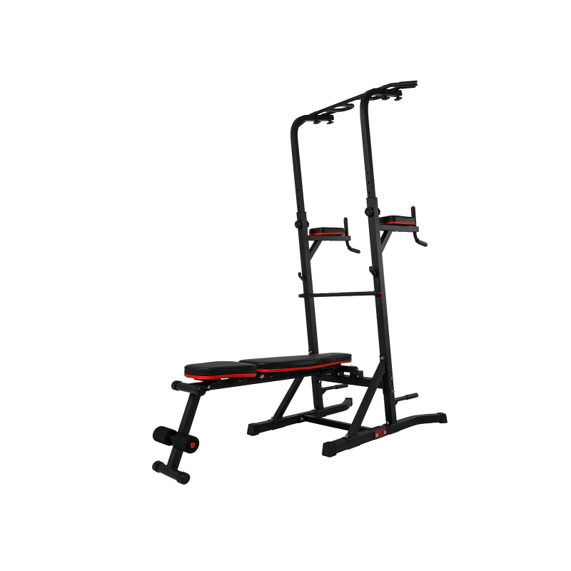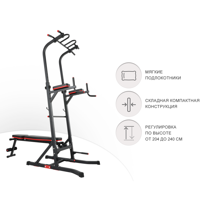 Турник-пресс-брусья UNIXFIT Power Тower 150Р со скамьей, домашний, размер 182 x 112 x 204 - 240 см, складная конструкция