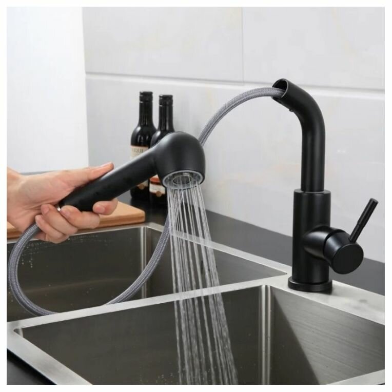 Смеситель для кухни, 1-ручк, высокий излив с вытяжной лейкой, черный, FASHUN (Китай) арт. A56009-7 интересное: