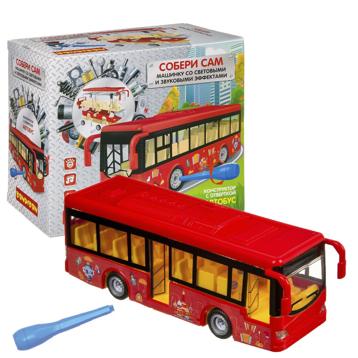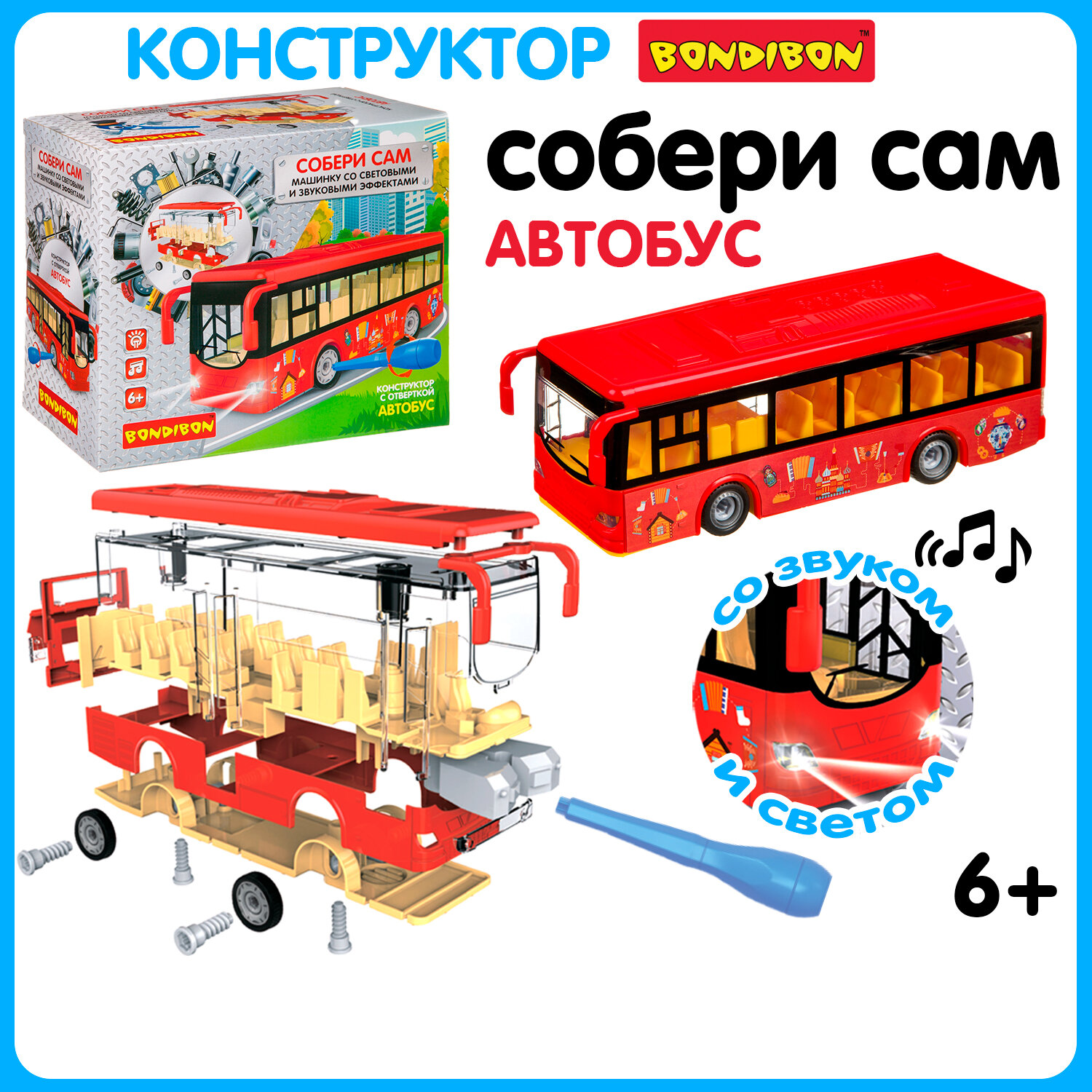Конструктор с отверкой Bondibon Собирай и играй автобус световые и звуковые эффекты подарок мальчику 6+