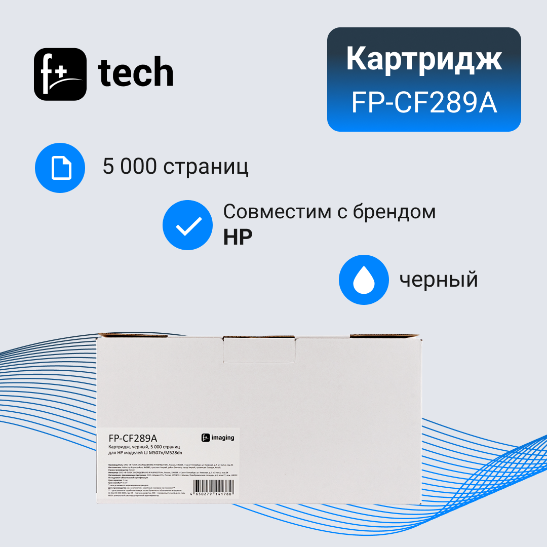 Купить Картридж F+ imaging, черный, 5 000 страниц, для HP моделей LJ M507n/M528dn (аналог CF289A), FP-CF289A