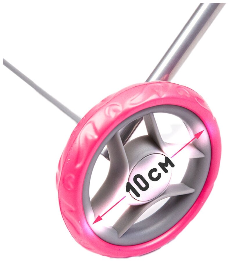 Замечательная прочная, яркая коляска. Хорошо закреплены колёсики,что не маловажно. Прочный материал.
