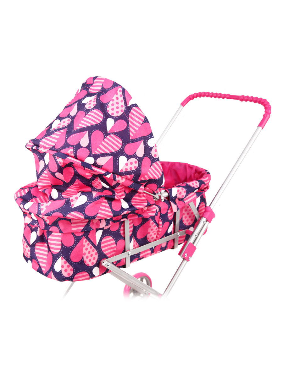 Купить Коляска 9308 Melobo Люлька металлическая, розовая с сердечками