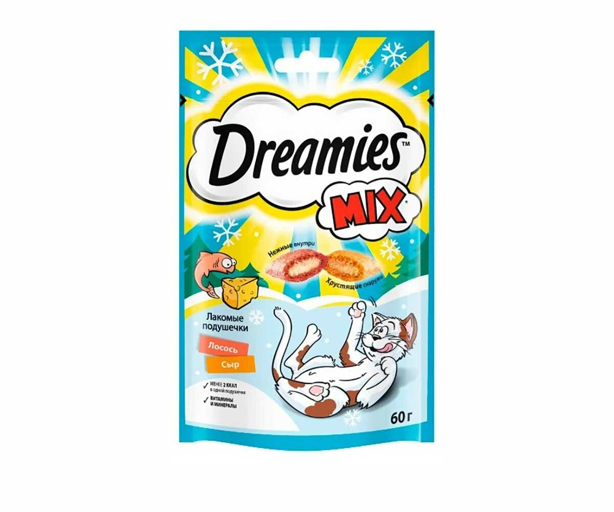 Dreamies MIX лакомство для кошек, подушечки с лососем и сыром (6шт в уп) 60 гр