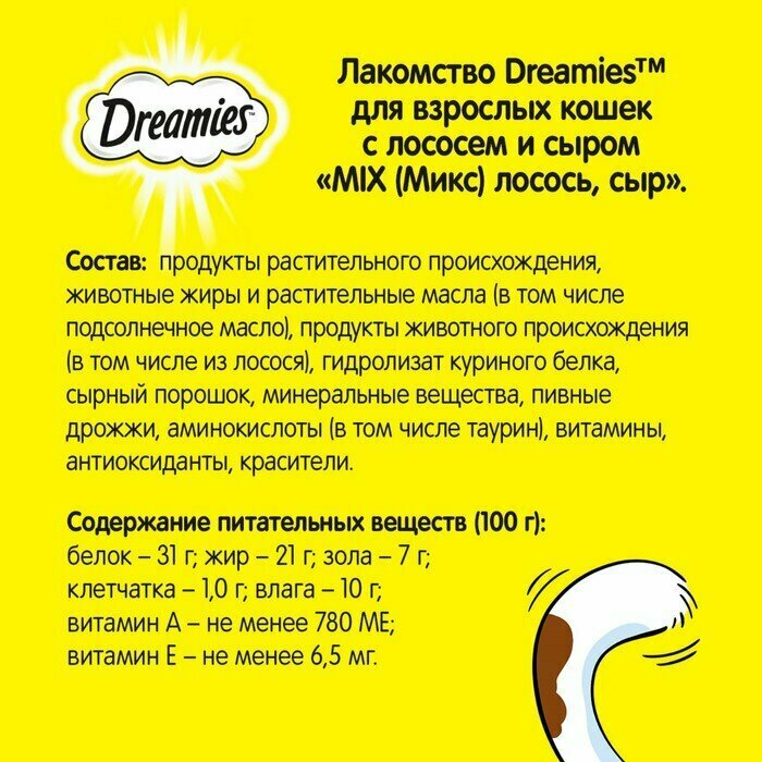 Dreamies Лакомство Dreamies MIX для взрослых кошек с лососем и сыром 60г 10222407 10236787 0,06 кг 44663