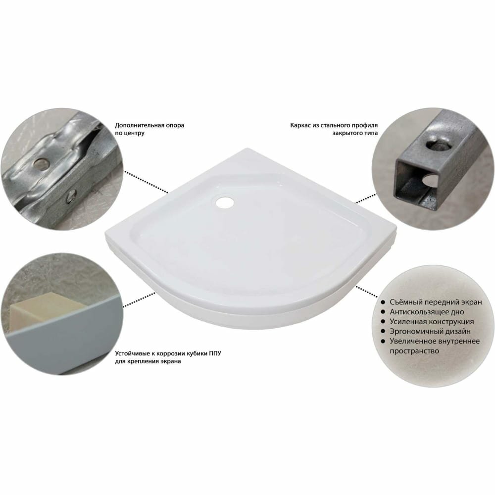 Поддон Triton акриловый 90х90х17 см полукруг белый низкий (Щ0000005624) интересное: