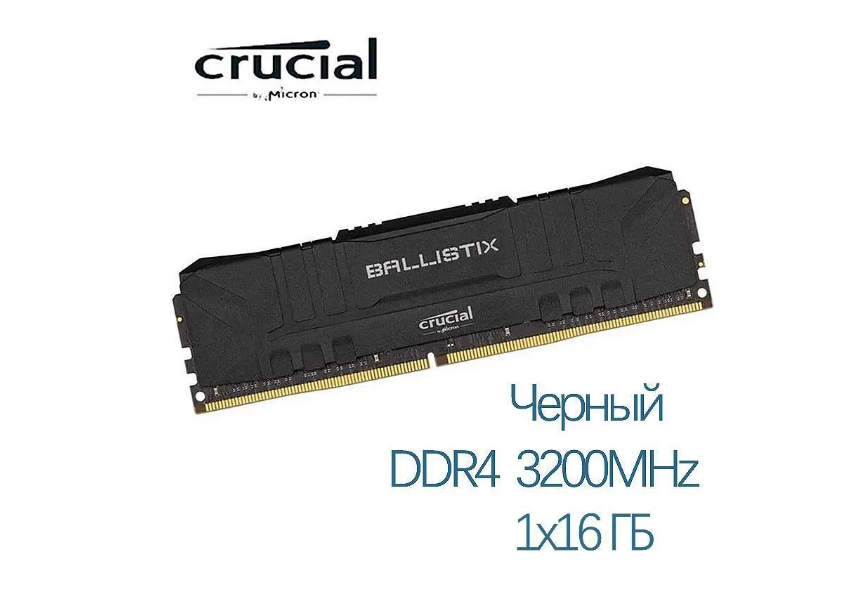 Модуль памяти Crucial DDR 4 Dimm 16GB Pc25600, 3200MHz, Crucial Ballistix Black (bl16g32c16u4b) Bl16 .