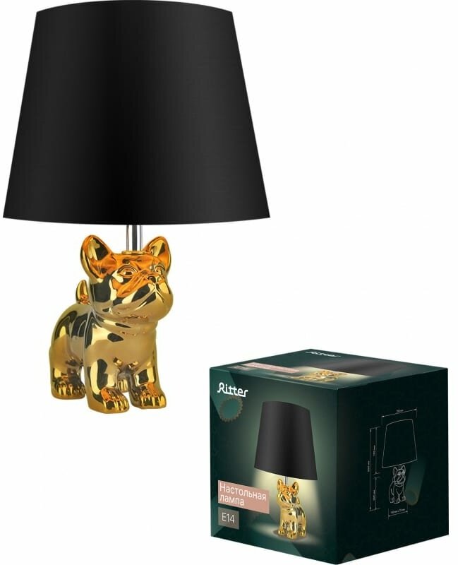 Настольная лампа Ritter Buddy с абажуром, 1xE14 40Вт, провод 1,6 м, черный/золотой