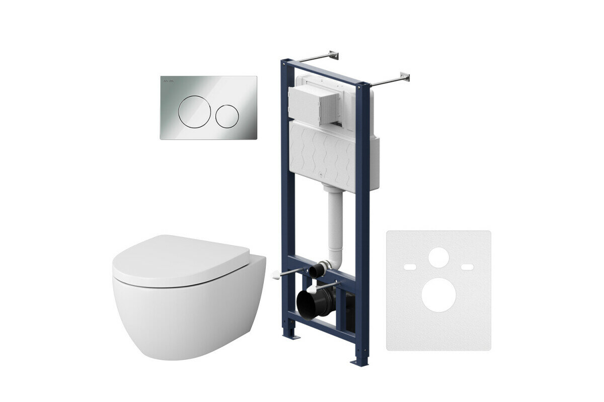 | Дополнительная информация | Бачок на стальной раме, смывная арматура, гибкая подводка воды к заливному клапану, монтажная коробка для окна обслуживания, регулируемые по высоте опорные стойки для крепежа в пол, шпильки для крепления к стене, крепежные шпильки для унитаза, патрубки фанового отвода, патрубки для подвода воды к унитазу, прокладка между стеной и унитазом (шумоизоляция), набор крепежа, клавиша с креплениями; чаша унитаза, сиденье, крепления, инструкция. |