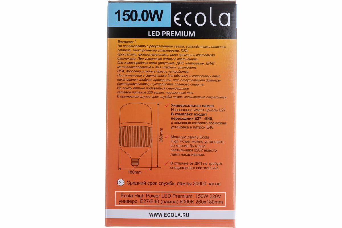 Лампа светодиодная ECOLA High Premium 150W 220V универс. E27/E40 (лампа) 6000K 260х180mm