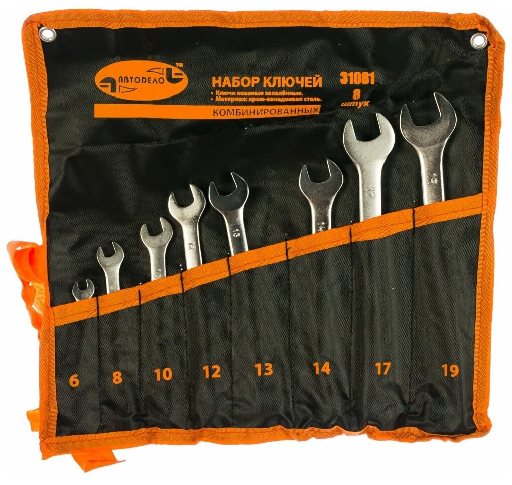 Набор ключей комбинированных, ключи гаечные, 8 шт. 6-19мм. "АвтоДело", рожковые/накидные, сумка, 31081