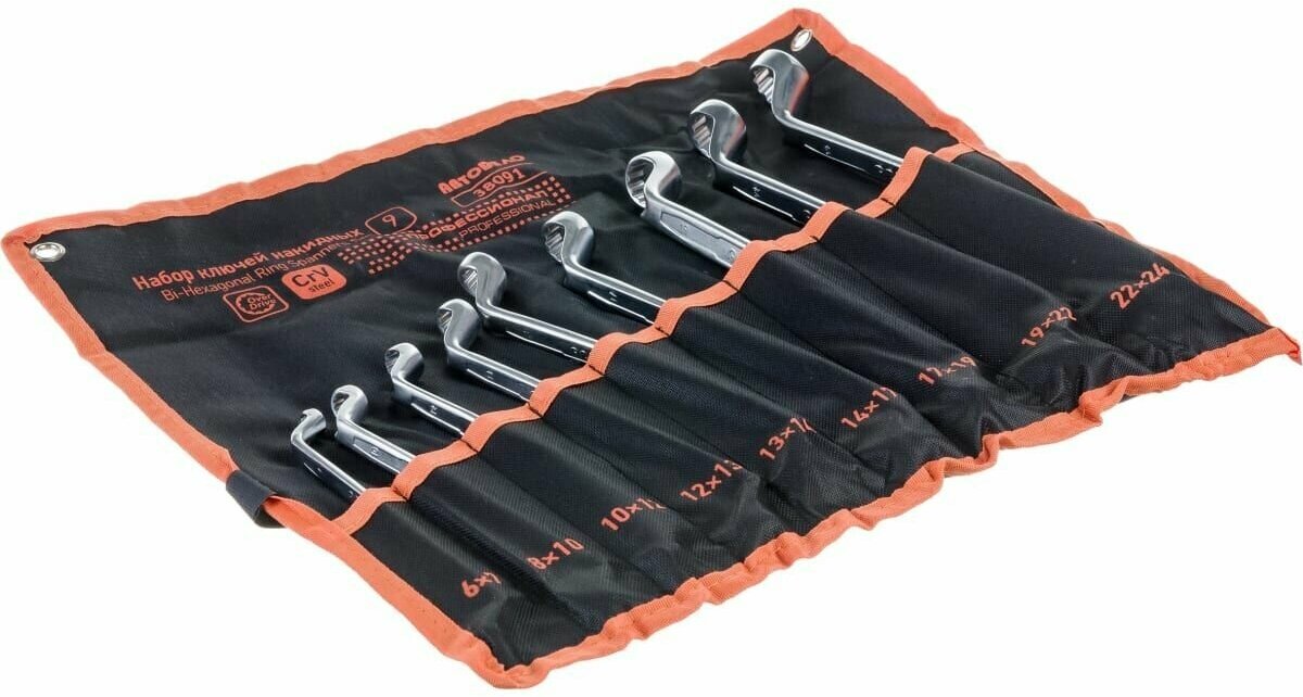 Набор ключей накидных 9 пр. 6-24 мм сумка АвтоДело Professional автодело 38091 | цена за 1 шт