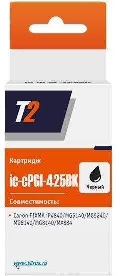 T2 Расходные материалы PGI-425BK Картридж IC-CPGI-425BK для Canon PIXMA iP4840 MG5140 MG6140 MG8140 MX884, черный с чипом