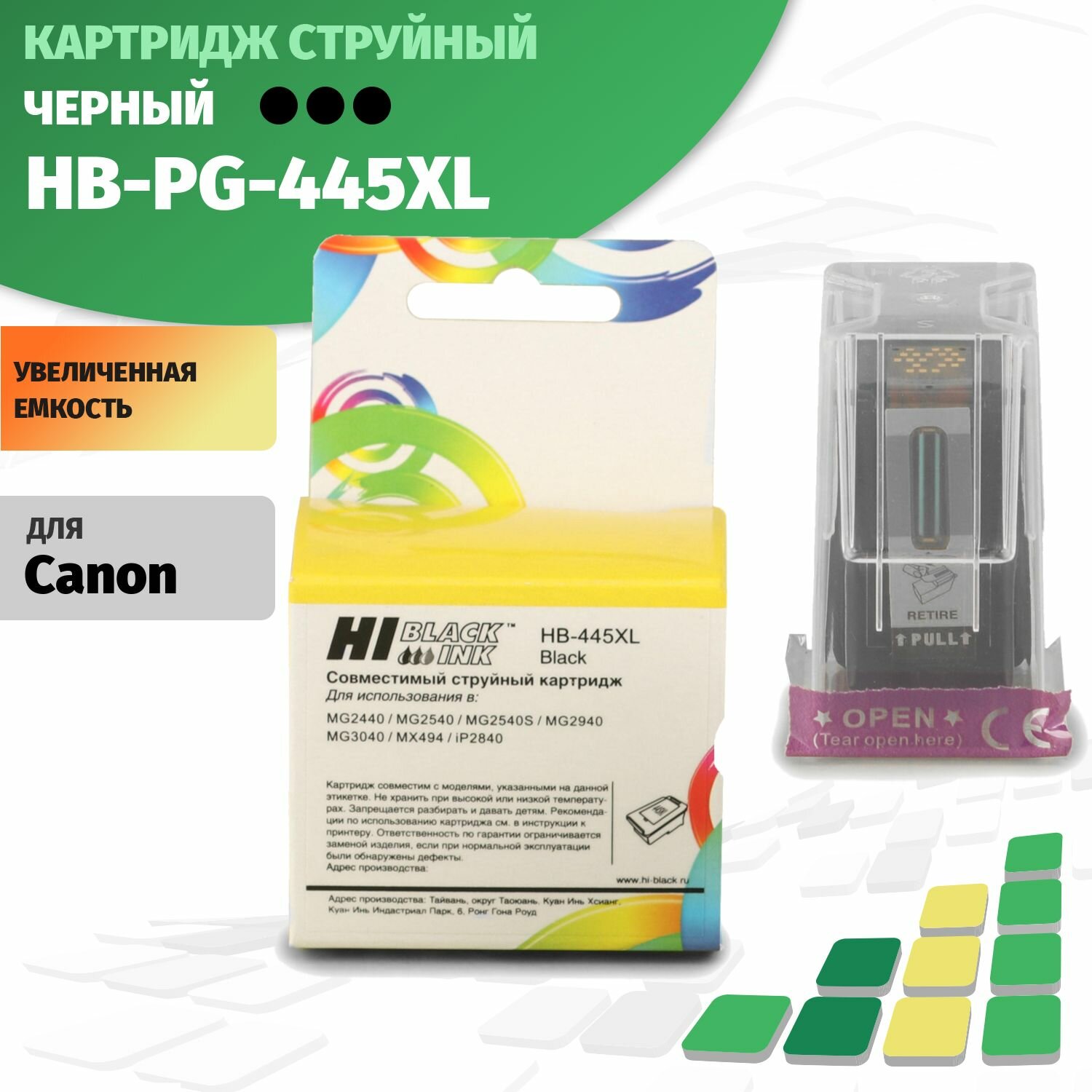 Картридж-Hi-Black_(HB-PG-445XL) для Canon PIXMA MG2440/2540, Bk