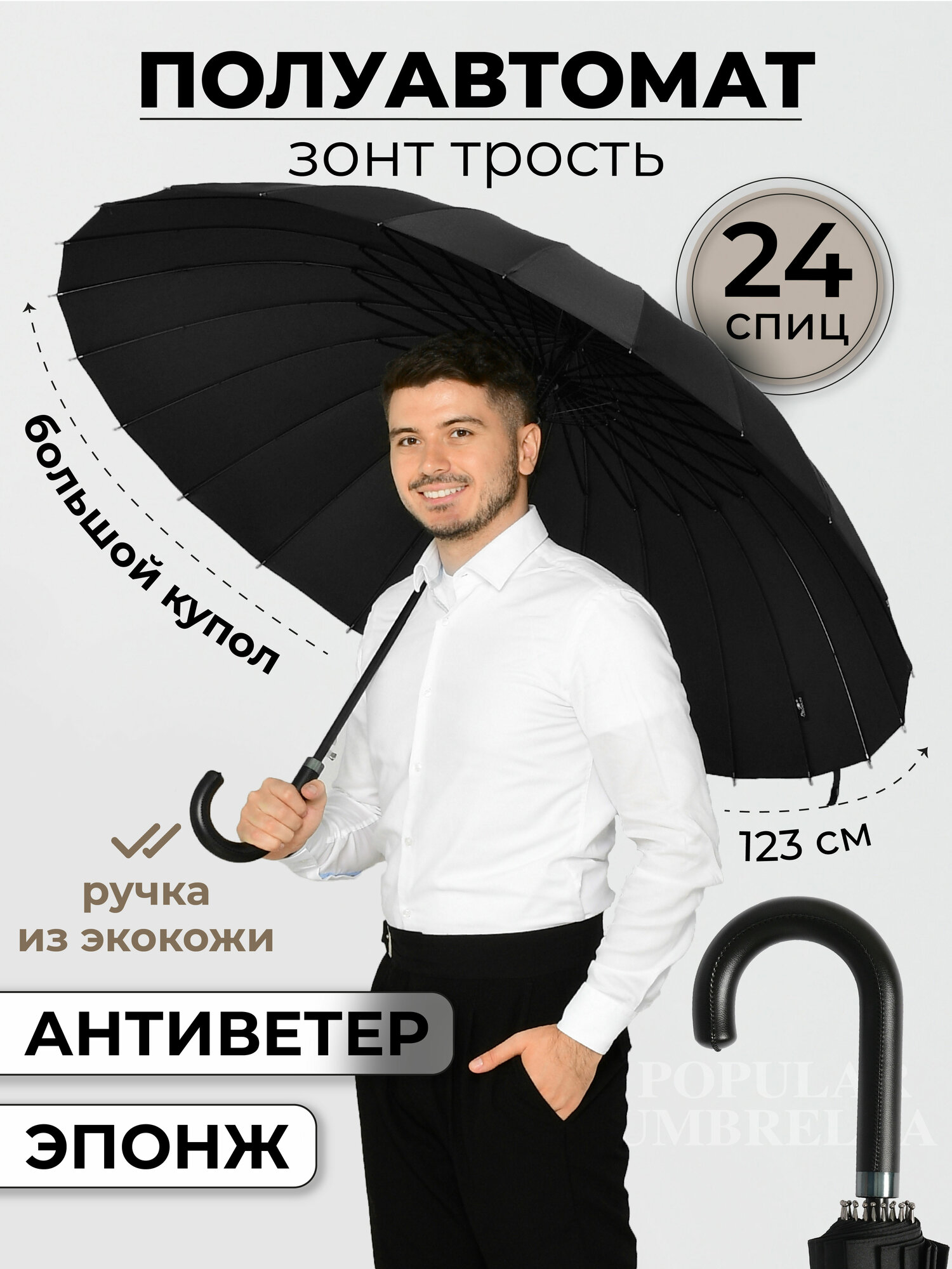 Зонт-трость Popular, полуавтомат, купол 123 см., система «антиветер», чехол в комплекте, для мужчин, черный интересное: