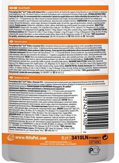конс. Хиллс 3410 Диета пауч для кошек K/D лечение заболеваний почек Лосось 85г