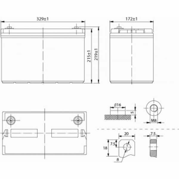 | Дополнительная информация | тип клемм - болт + гайка Ø 8 мм / болт Ø 8 мм |