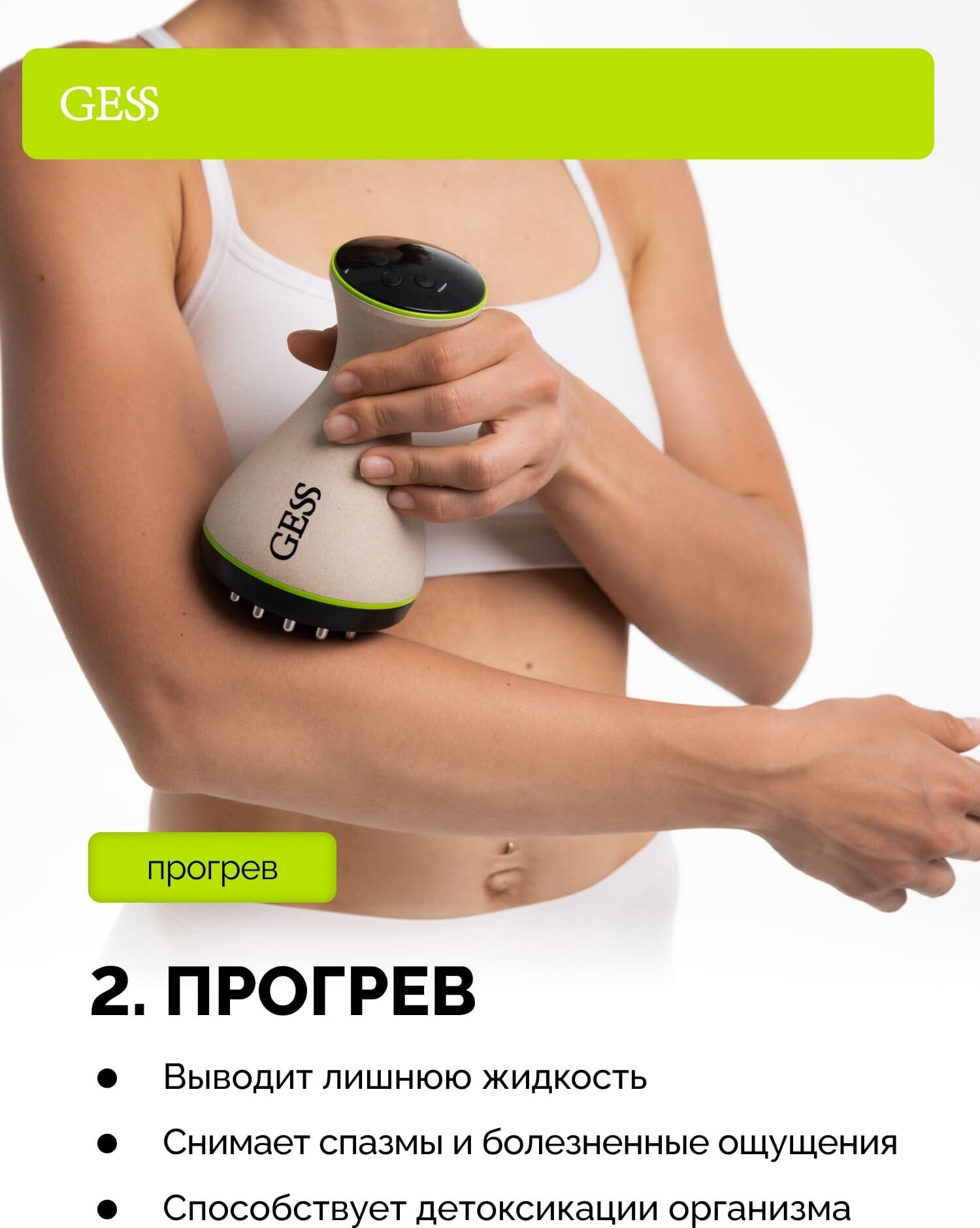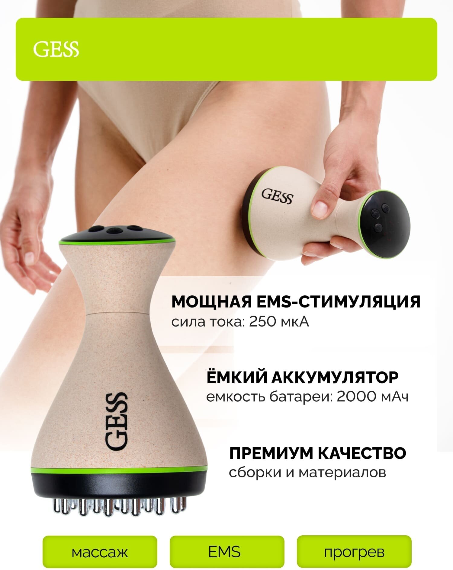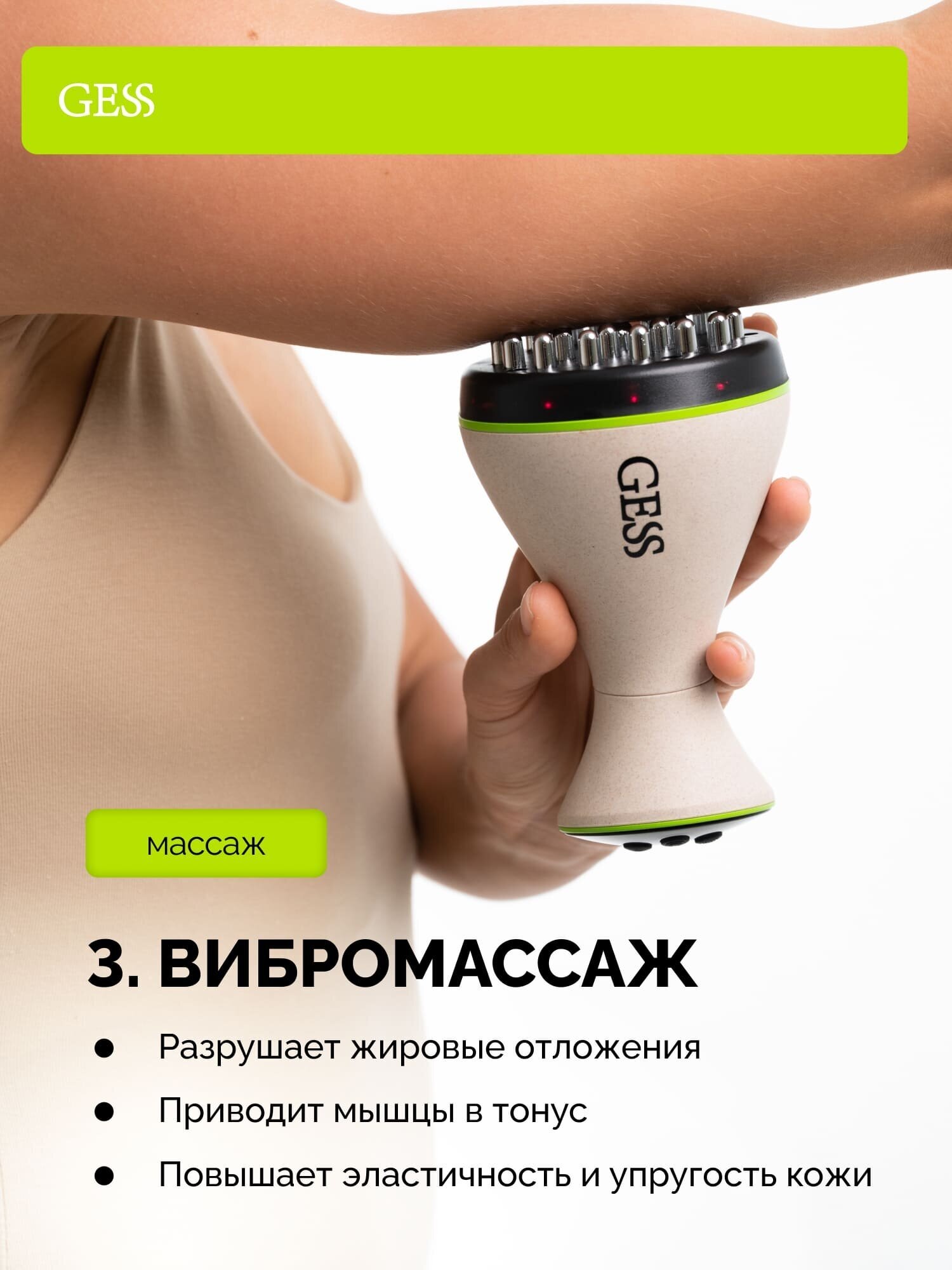 Вибромассажер для тела антицеллюлитный GESS MIO, лимфодренажный, моделирующий с EMS, 3 режима