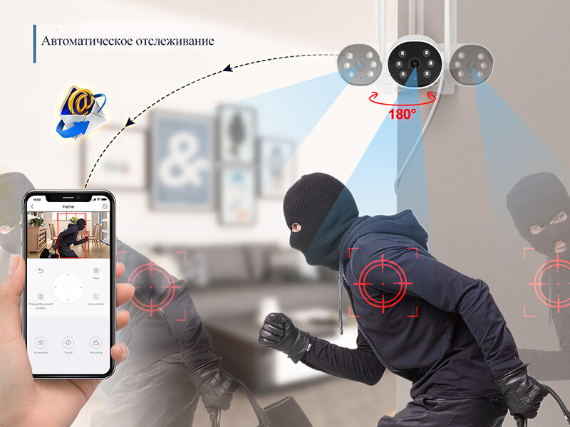 Беспроводной цифровой Wi-Fi комплект видеонаблюдения на 4 PTZ IP камеры 3Mp со звуком и управлением поворотом 180 град интересное: