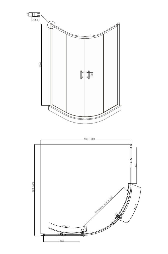 Душевое ограждение Ambassador Kingston 14011106 800x800x2000