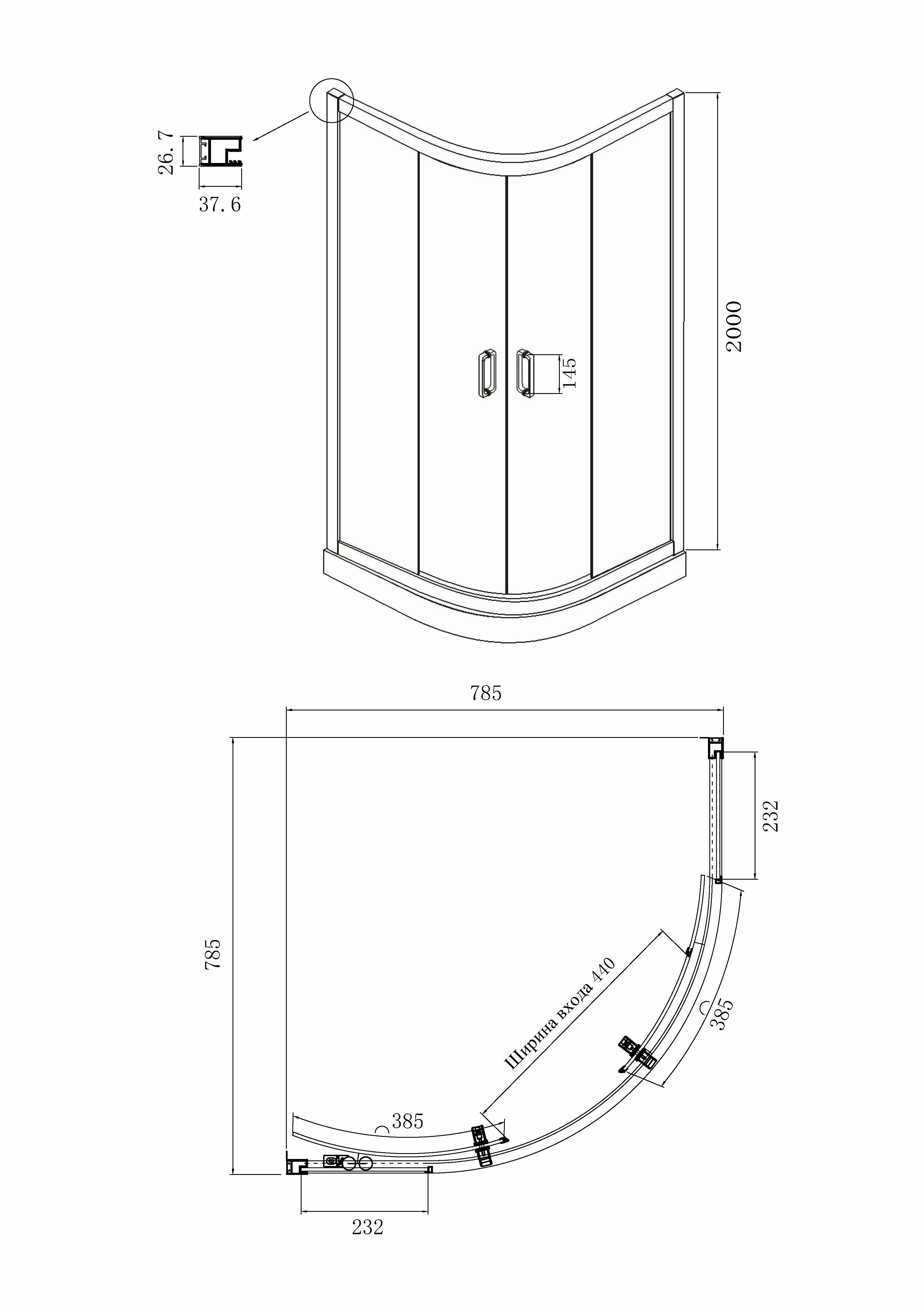 Душевое ограждение Ambassador Kingston 14011206 800x800x2000 интересное: