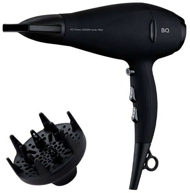 Фен BQ-HD2208B, 2200Вт, 3 режима нагрева, 2 скорости, черный /1/12/