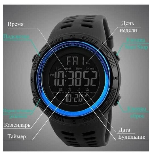 Смарт часы SKMEI 1251 черные/синие интересное: