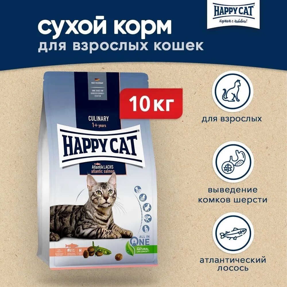 Купить HAPPY CAT ADULT CULINARY для взрослых кошек с атлантическим лососем (10 кг)