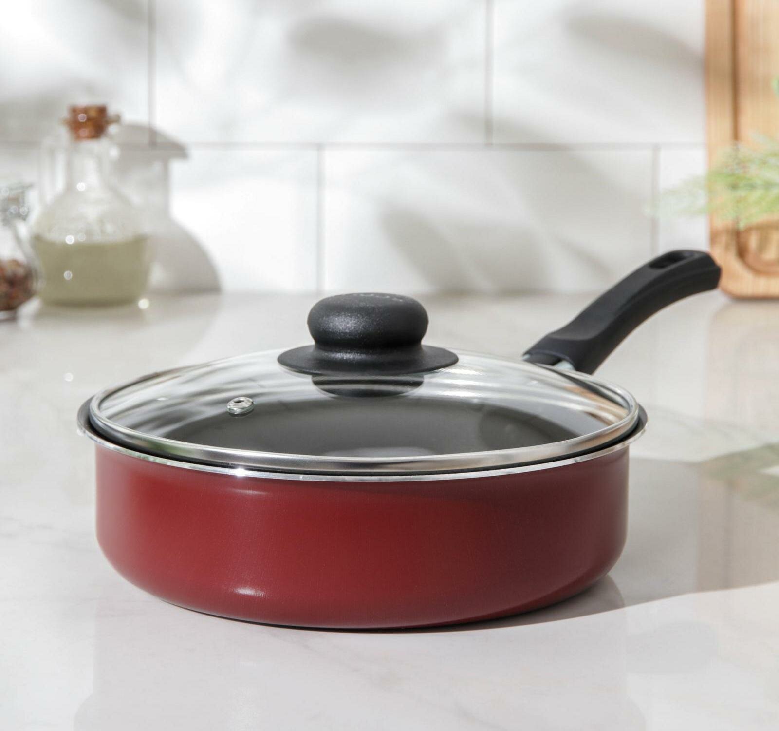 SCOVO Сотейник «Эксперт», 1,7 л, d=20 см, пластиковая ручка, стеклянная крышка, антипригарное покрытие, цвет бордовый